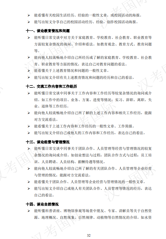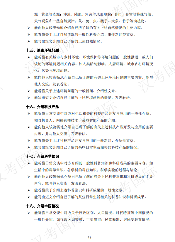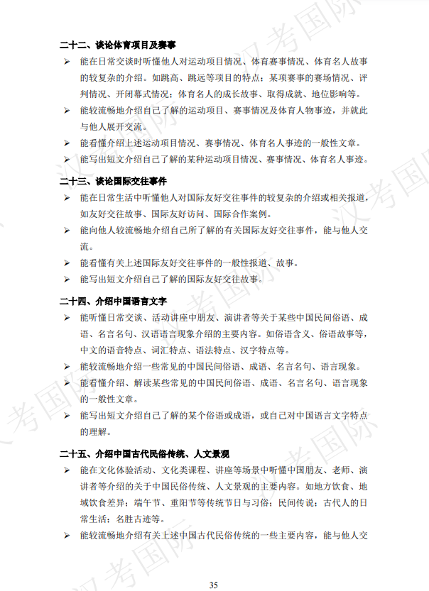 A 400+ page document, in Chinese, is available on the official website of HSK exams, Chinesetest.cn.